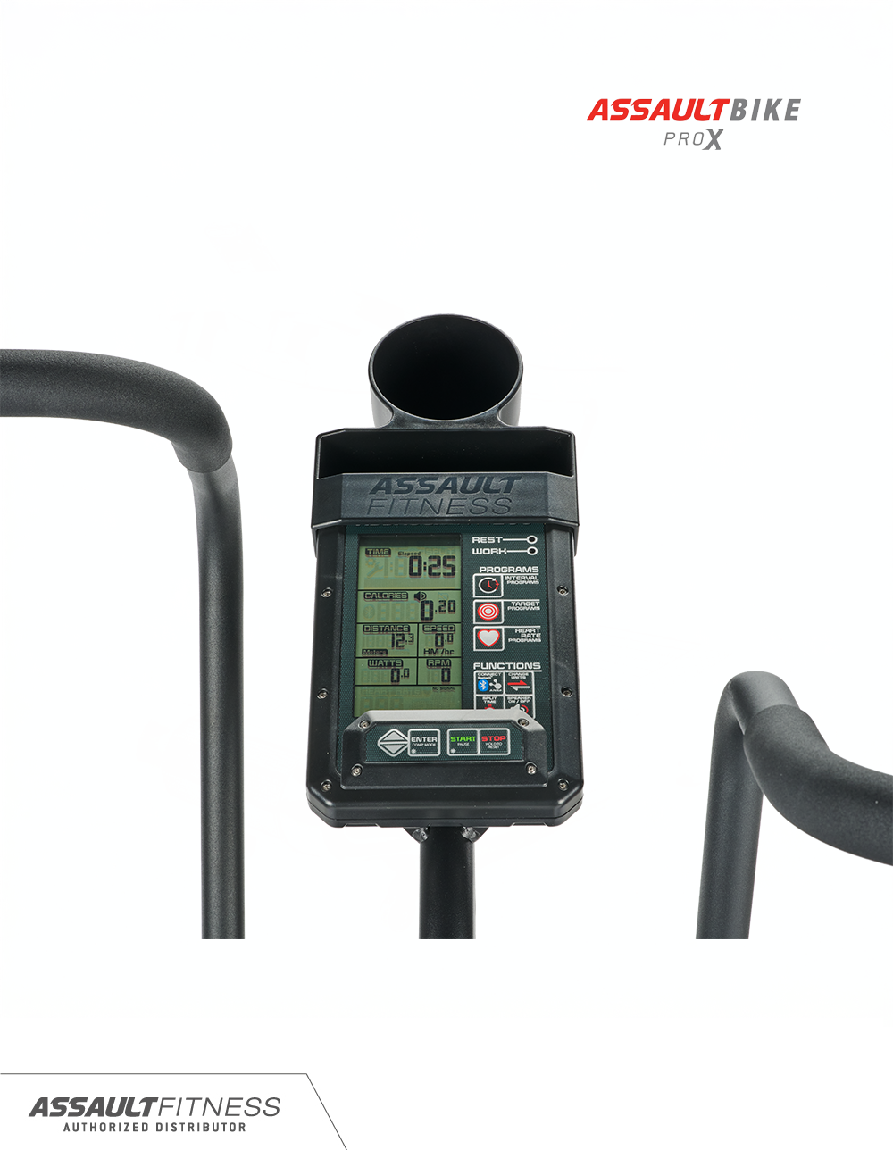 AssaultBike Pro X cuenta con nuestra consola Elite, que tiene una pantalla LCD de alto contraste. Conecte su teléfono inteligente a través de Bluetooth y ANT para realizar un seguimiento de los entrenamientos en la aplicación Assault Fitness. Personaliza tu entrenamiento utilizando una de las siete opciones de programación integradas o la configuración del modo de competición.